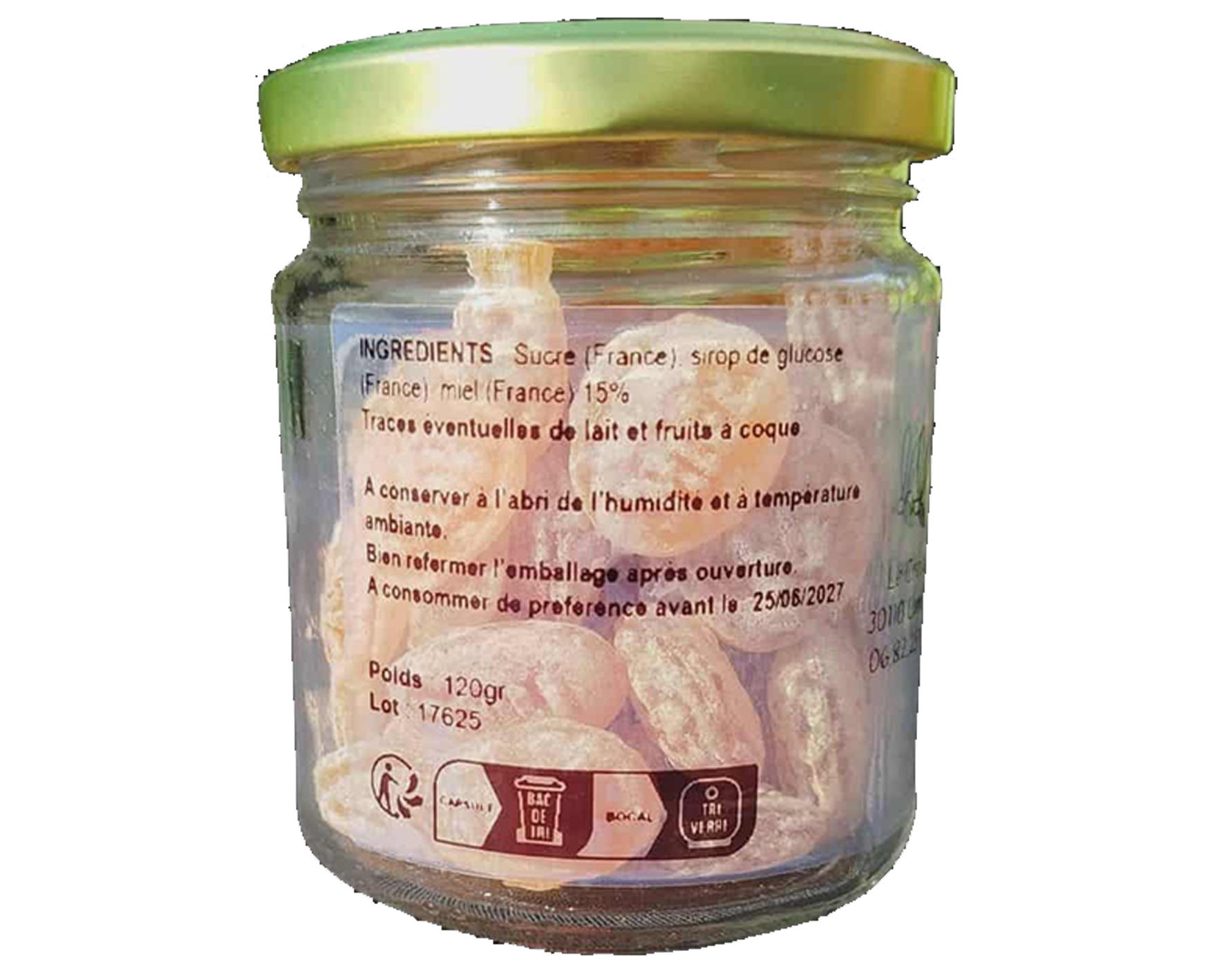 Découvrez nos bonbons au miel artisanaux. Composés de miel pur, sirop de glucose et sucre, ces bonbons sont 100 % naturels, sans colorant, sans conservateur et sans arôme artificiel. Tous les ingrédients sont d’origine française, garantissant un produit local et de qualité.