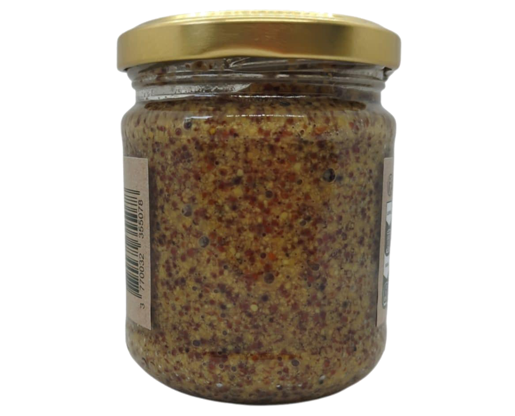 Alliance parfaite entre le piquant de la moutarde à l’ancienne et la douceur du miel de nos ruches.