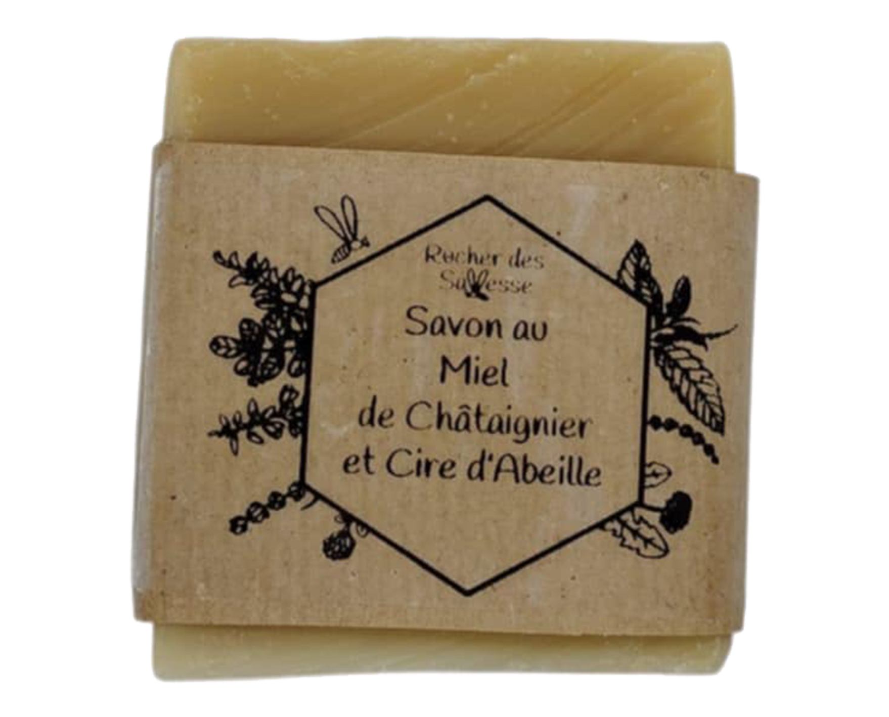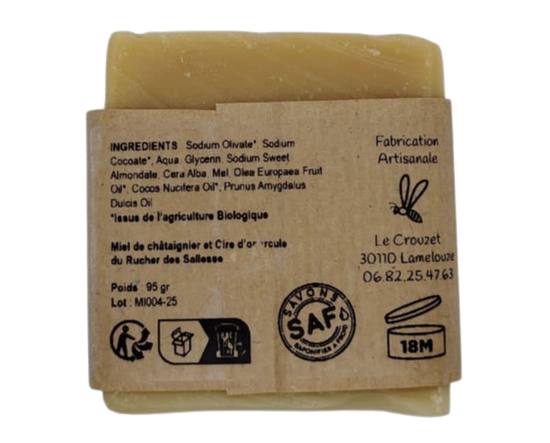Un savon doux et naturel, enrichi en miel de châtaignier nourrissant et en cire d’abeilles protectrice.